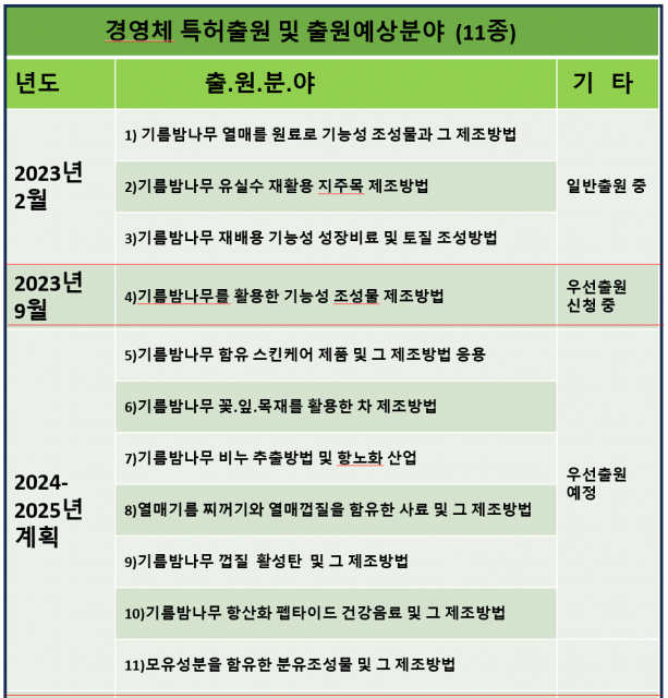 본 경영체 특허등록.출원예상 현황(11종)