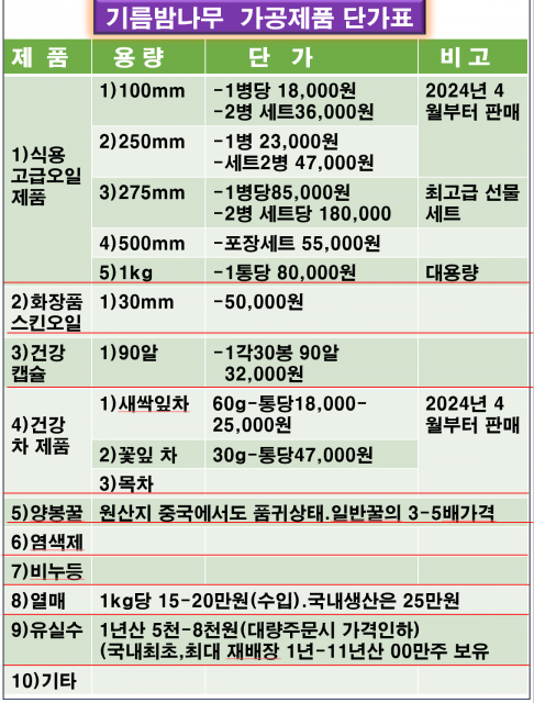 기름밤나무 제품 단가표