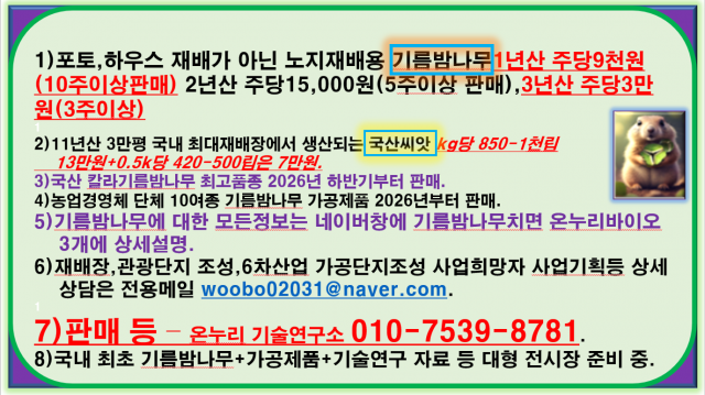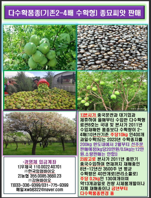 기름밤나무 및 종자씨앗 단가표
